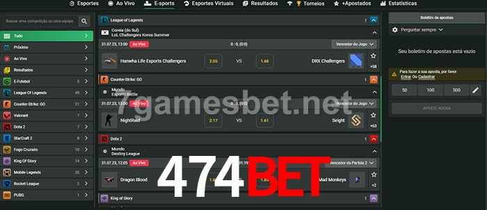 O 474bet oferece uma grande seleção de opções de apostas em e-sports com probabilidades competitivas